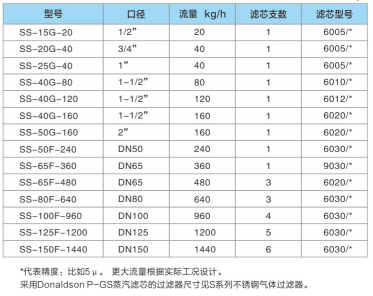 采用Donaldson P-GS蒸汽濾芯的過濾器尺寸見S系列不銹鋼氣體過濾器。